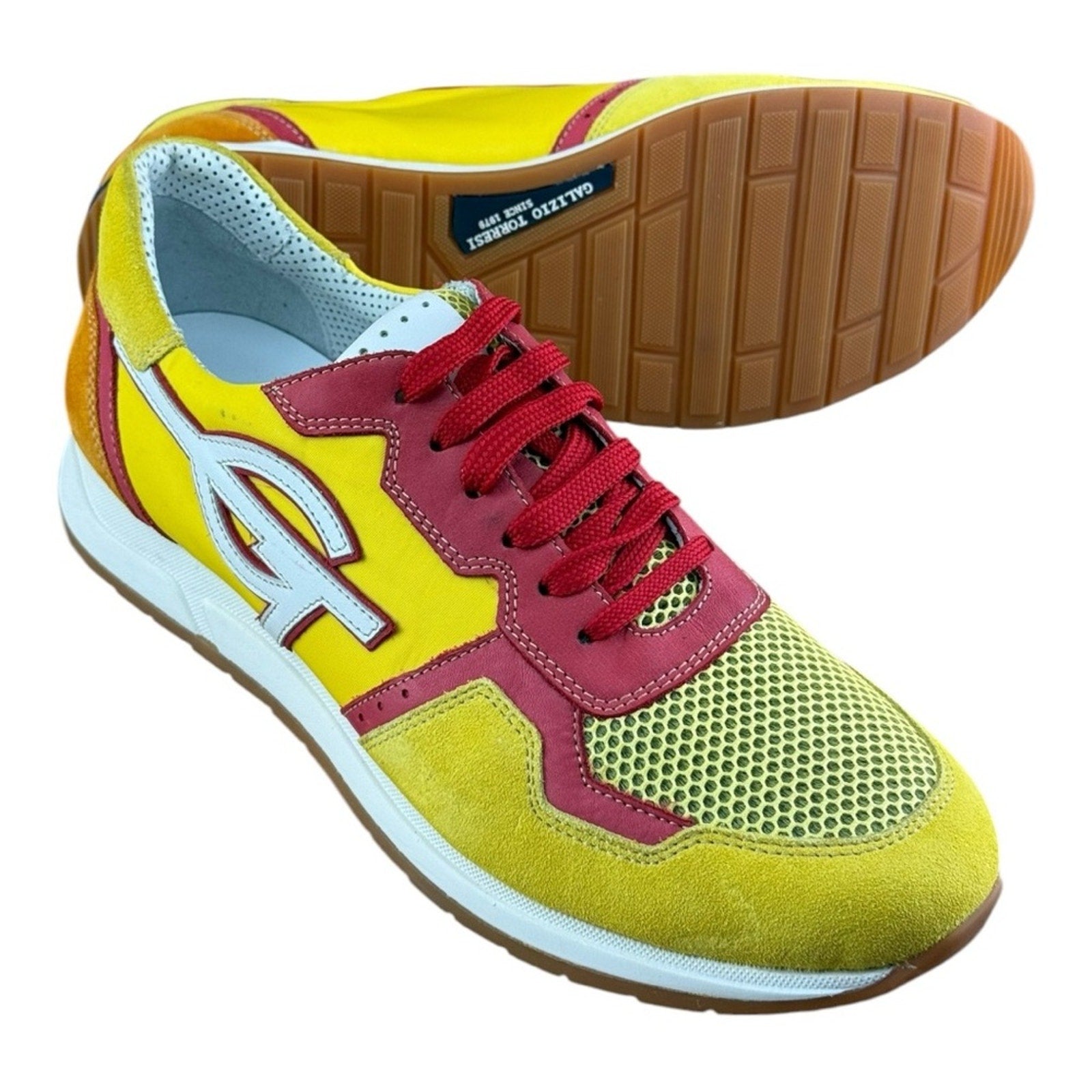 Zapatillas deportivas informales de piel de diseño Galizio Torresi para hombre, talla 8,5-9 | 42 EU, color amarillo